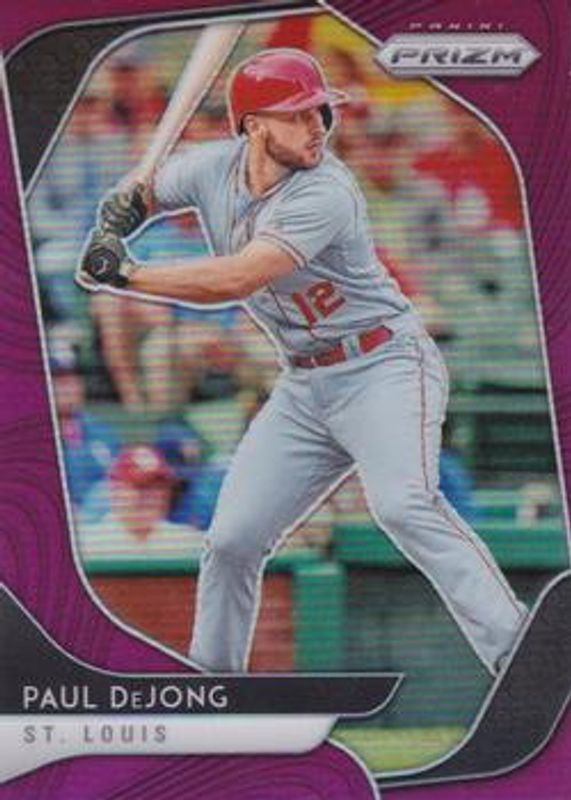 The Paul DeJong 2020 Prizm #225 Purple card is 1 of 36 Paul DeJong's card variations in the 2020 Prizm set being tracked by Sports Card Investor, including Base, Blue, Carolina Blue, Cosmic Haze, and Green.