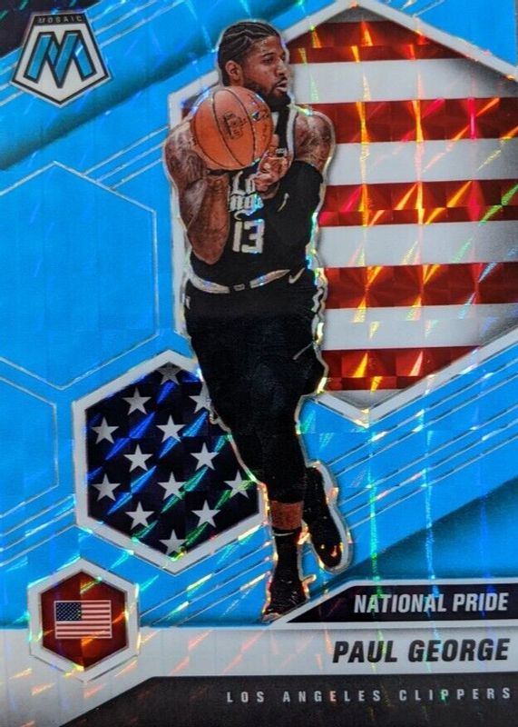 Paul George 2020 Mosaic #255 National Pride - Blue Fluorescent /15 RAW Price Guide