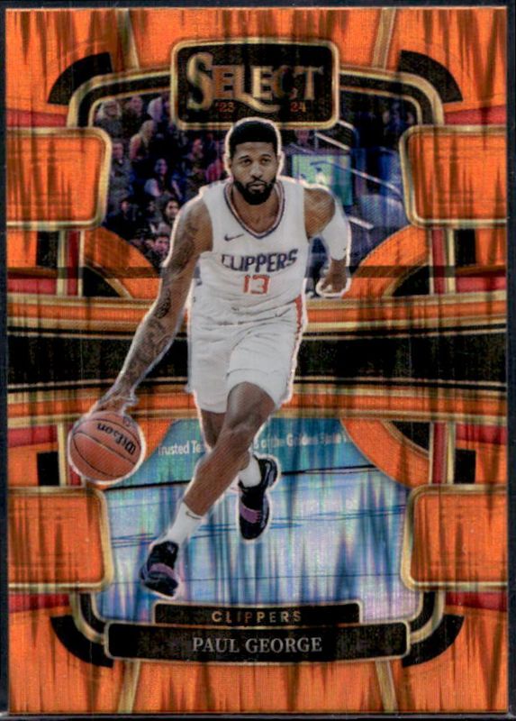The Paul George 2023 Select #14 Concourse Orange Flash card is 1 of 200 Paul George's card variations in the 2023 Select set being tracked by Sports Card Investor, including Concourse, Courtside, Mezzanine, Premier Level, and Concourse Blue Cracked Ice.
