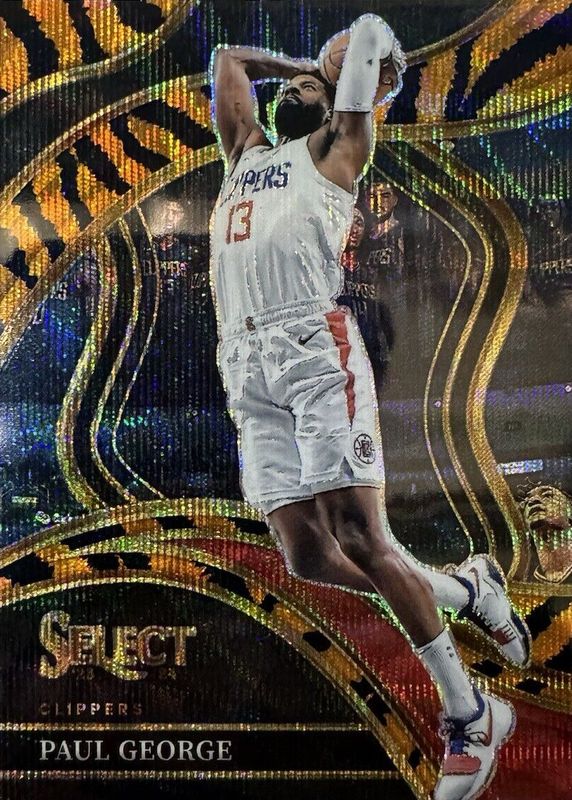 2023-24 Panini Select Paul George #214 Courtside Tiger Stripes Prizm