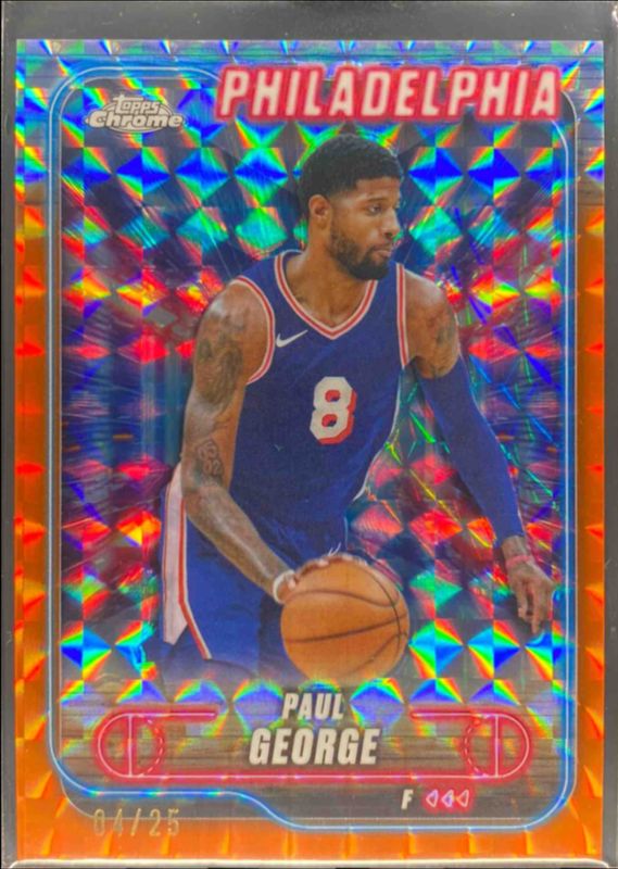 Paul George 2024 Topps Chrome #135 Orange Geometric Refractor /25 RAW Price Guide