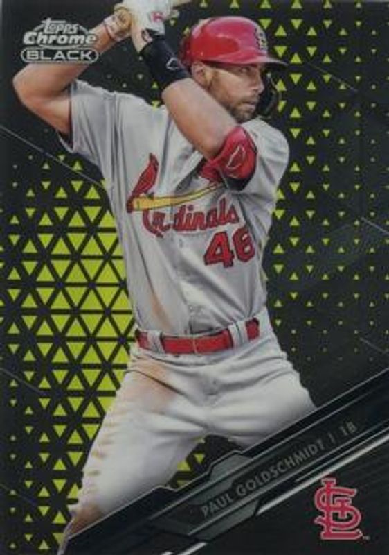 The Paul Goldschmidt 2020 Topps Chrome Black #34 Gold /50 card is 1 of 16 Paul Goldschmidt's card variations in the 2020 Topps Chrome Black set being tracked by Sports Card Investor, including Base, Refractor /199, Green /99, Blue /75, and Orange /25.