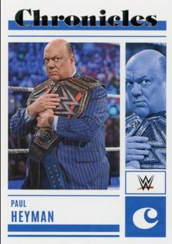 The Paul Heyman 2023 Chronicles WWE #100 Base card is 1 of 35 Paul Heyman's card variations in the 2023 Chronicles WWE set being tracked by Sports Card Investor, including #282 Base, #302 Base, #282 Bronze, #100 Bronze, and #302 Silver.