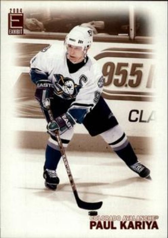 The Paul Kariya 2003 Pacific Exhibit #161 Base /955 card is 1 of 3 Paul Kariya's card variations in the 2003 Pacific Exhibit set being tracked by Sports Card Investor, including Blue Backs /275, and History Makers.