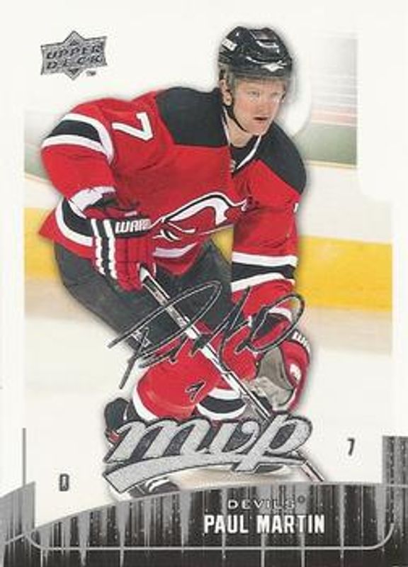 The Paul Martin 2009 Upper Deck MVP #126 Base card is 1 of 3 Paul Martin's card variations in the 2009 Upper Deck MVP set being tracked by Sports Card Investor, including Gold Script /100, and Super Script /25.