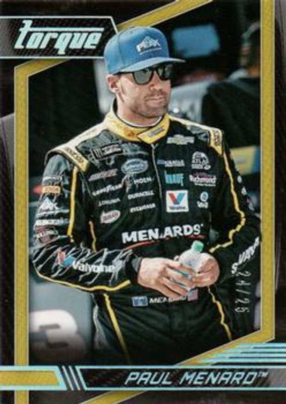 The Paul Menard 2017 Torque NASCAR #14 Holo Silver /25 card is 1 of 49 Paul Menard's card variations in the 2017 Torque NASCAR set being tracked by Sports Card Investor, including Base, Gold, Blue /150, Red /100, and Artist Proof /75.