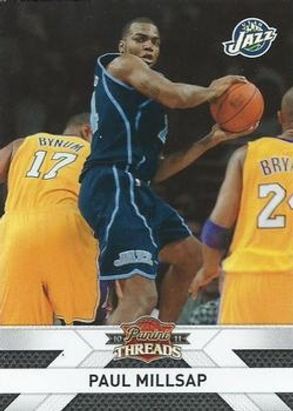 The Paul Millsap 2010 Threads #84 Base /399 card is 1 of 5 Paul Millsap's card variations in the 2010 Threads set being tracked by Sports Card Investor, including Century Proof Orange /199, Century Proof Silver /199, Century Proof Gold /99, and Century Proof Platinum /25.