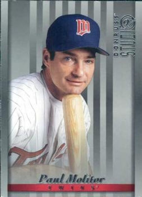 The Paul Molitor 1997 Donruss Studio #11 Base card is 1 of 4 Paul Molitor's card variations in the 1997 Donruss Studio set being tracked by Sports Card Investor, including Press Proof Gold, Press Proof Silver, and Master Strokes /2000.
