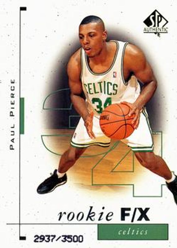 The Paul Pierce 1998 SP Authentic #100 Base Rookie card is 1 of 3 Paul Pierce's card variations in the 1998 SP Authentic set being tracked by Sports Card Investor, including Rookie FX /3500, and NBA 2K.