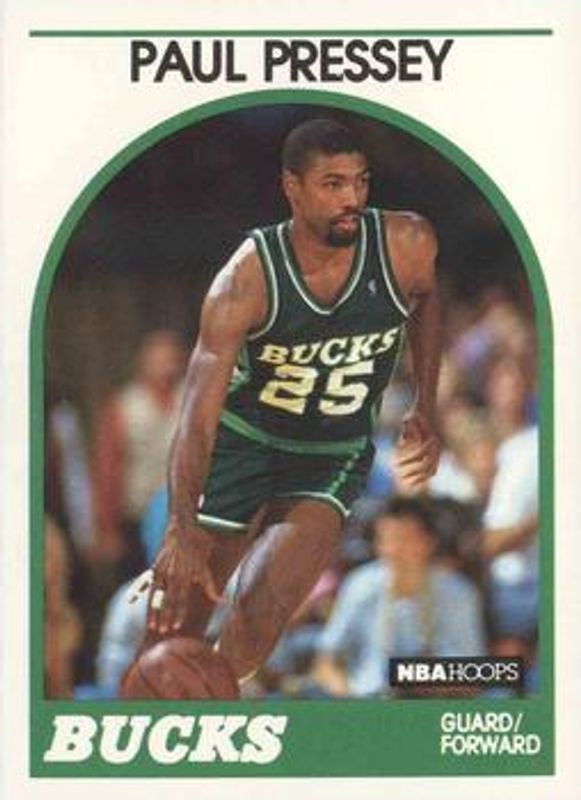 Paul Pressey's Basketball cards are available in at least 10 sets. Paul Pressey's biggest 7-day price movers are 1989 Hoops #79 Base, 2021 Optic #OG-PPS Opti Graphs - Choice Black Gold /8, and 2021 Optic #OG-PPS Opti Graphs /25.