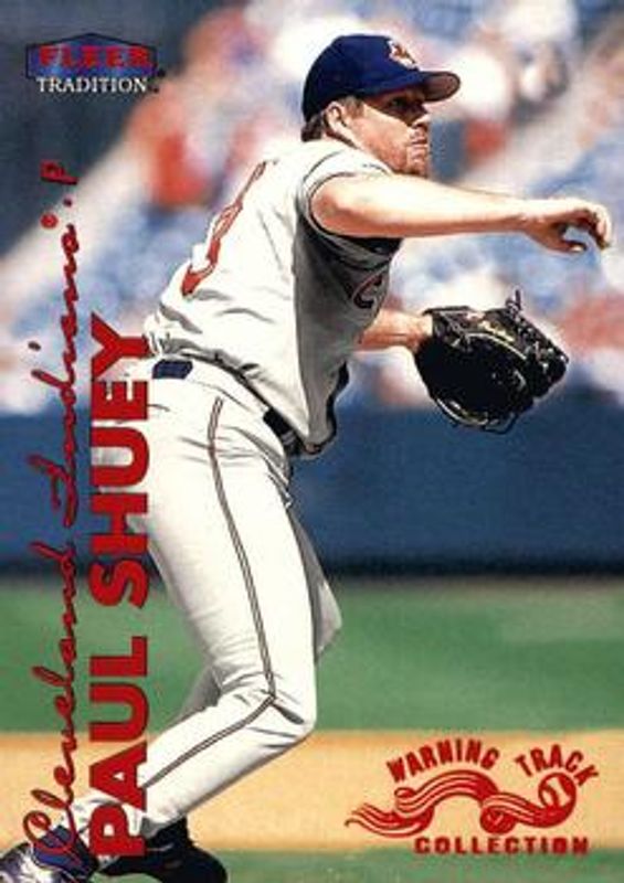 The Paul Shuey 1999 Fleer Tradition #555W Warning Track Collection card is 1 of 4 Paul Shuey's card variations in the 1999 Fleer Tradition set being tracked by Sports Card Investor, including Base, Millennium, and Starting 9 /9.