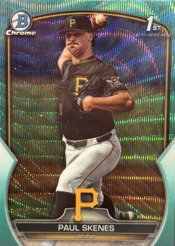 Auctions Ending Soon for Paul Skenes 2023 Bowman Draft #BDC-14 Chrome - Aqua Wave Refractor /125 (1st) RAW