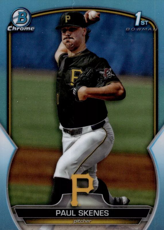 Best Prices Available For Sale of Paul Skenes 2023 Bowman Draft #BDC-14 Chrome - Sky Blue Refractor (1st)