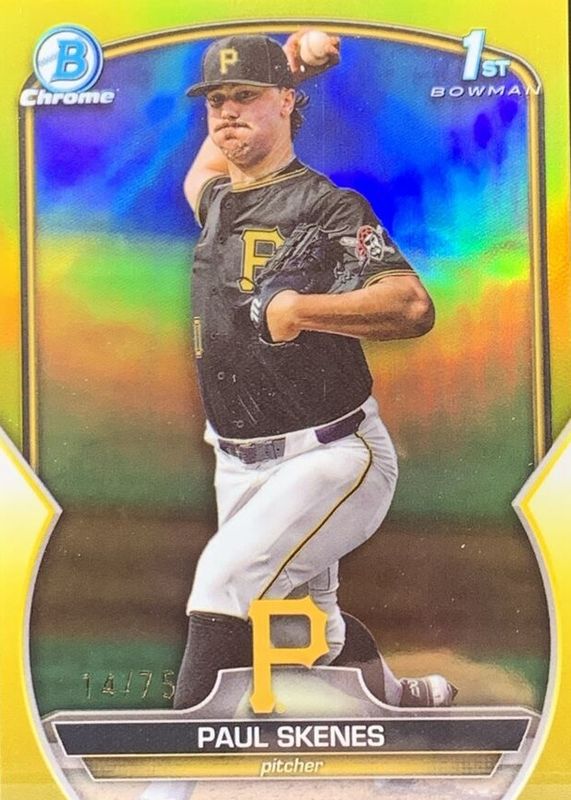PAUL SKENES 2023 BOWMAN CHROME DRAFT #BDC-14 1ST PROSPECT YELLOW REFRACTOR 55/75