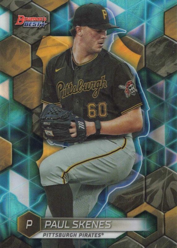 The Paul Skenes 2023 Bowman's Best #TP-22 Top Prospects - Aqua Lava Refractor /199 card in Raw condition has moved down -$1.00 (-2.4%) in the last 30 days and was last sold for $40.00 .