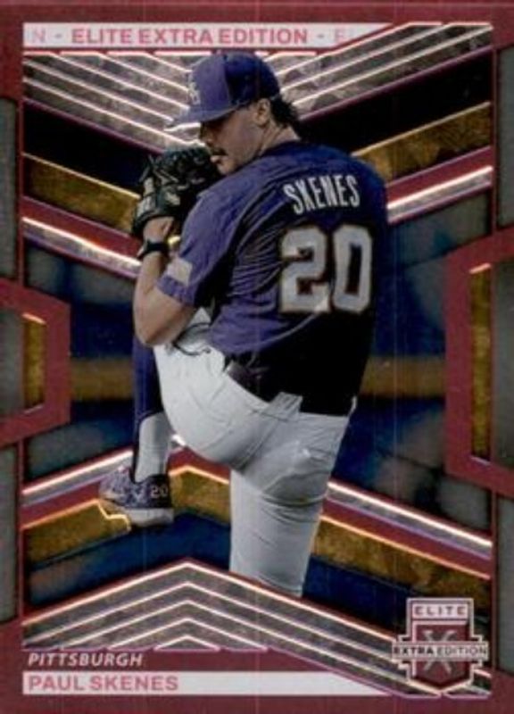The Paul Skenes 2023 Elite Extra Edition #7 Pink card is 1 of 166 Paul Skenes' card variations in the 2023 Elite Extra Edition set being tracked by Sports Card Investor, including #160 Base, #7 Base, #160 Pink, #7 Signatures, and #160 Signatures.