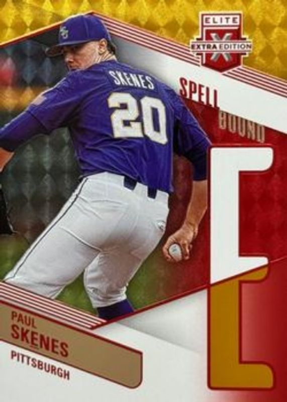 The Paul Skenes 2023 Elite Extra Edition #SP-3 Spellbound card is 1 of 166 Paul Skenes' card variations in the 2023 Elite Extra Edition set being tracked by Sports Card Investor, including #160 Base, #7 Base, #160 Pink, #7 Pink, and #7 Signatures.