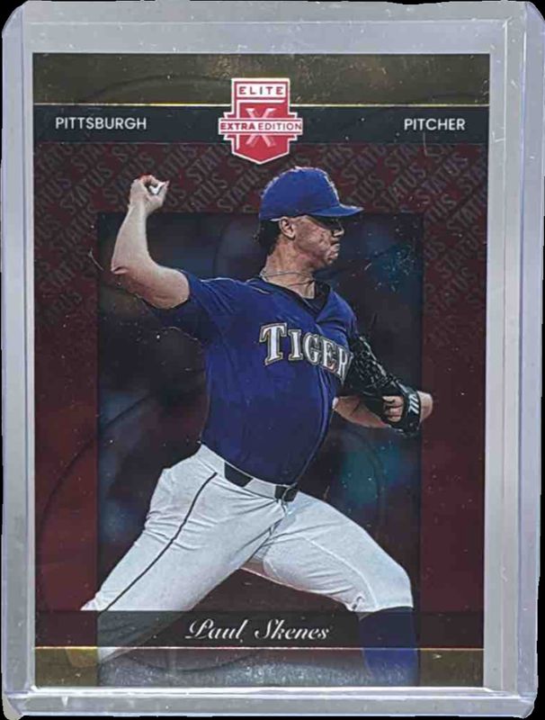 The Paul Skenes 2023 Elite Extra Edition #160 Status Red /199 card is 1 of 166 Paul Skenes' card variations in the 2023 Elite Extra Edition set being tracked by Sports Card Investor, including #160 Base, #7 Base, #160 Pink, #7 Pink, and #7 Signatures.
