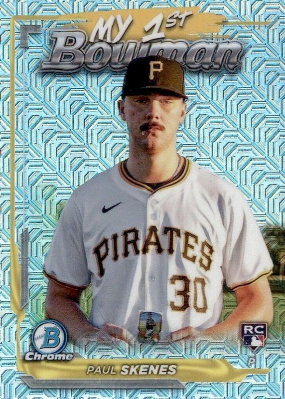 The Paul Skenes 2024 Bowman Chrome Mega Box #M1B-36 My 1st Bowman Rookie card in Raw condition has moved up $8.99 (+42.8%) in the last 30 days and was last sold for $29.99 .