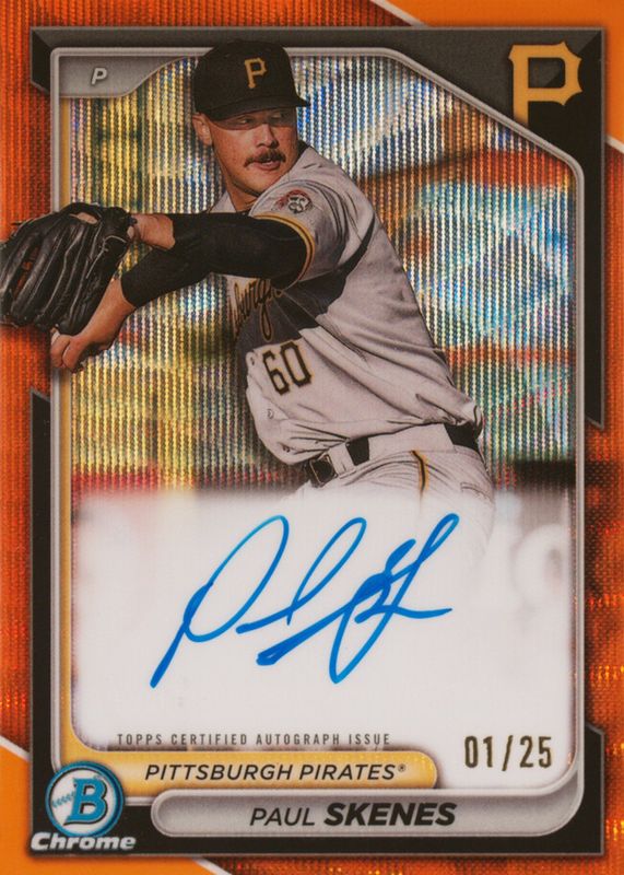 Paul Skenes 2024 Bowman #CPA-PS Chrome Prospect Auto - Orange Wave Refractor /25 Rookie RAW Price Guide