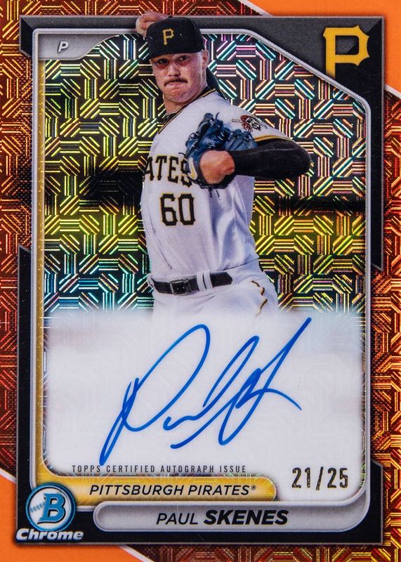 Paul Skenes 2024 Bowman Mega Box #BMA-PS Chrome Prospect Auto - Orange Refractor /25 Rookie RAW Price Guide
