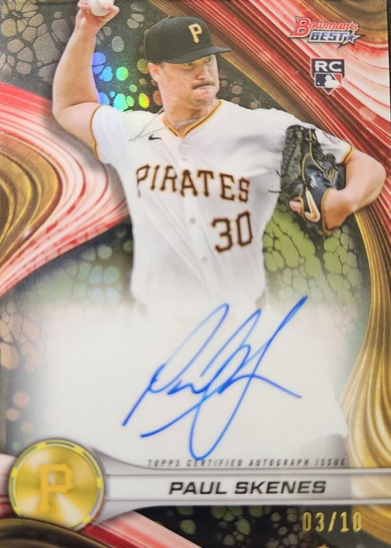The Paul Skenes 2024 Bowman's Best #B24-PS Best of 2024 Autographs - Black Refractor /10 Rookie card in Raw condition has not changed in price in the last 30 days and was last sold for $1,499.99 .