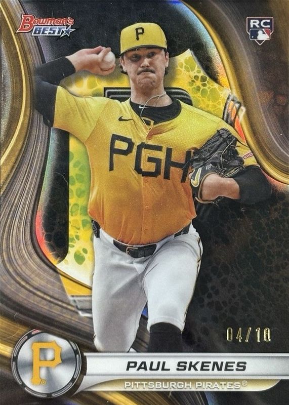 This card is 1 of 36 Paul Skenes' card variations in the 2024 Bowman's Best set being tracked by Sports Card Investor, including Base, Refractor, Wave Refractor, Mini-Diamond Refractor /299, and Purple Mojo Refractor /250.