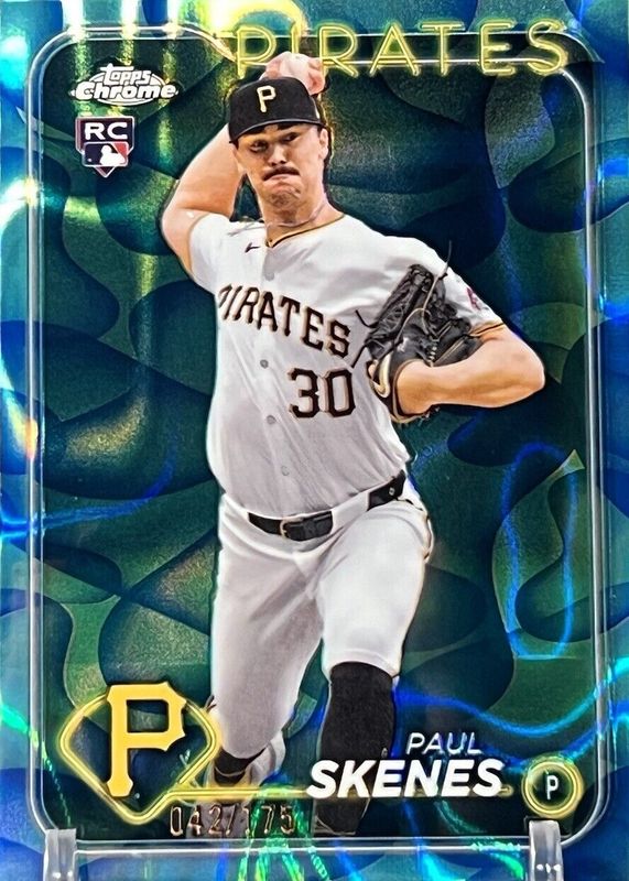 The Paul Skenes 2024 Topps Chrome Update #USC88 Aqua & Blue Lava Lamp Refractor /175 Rookie card in Raw condition has not changed in price in the last 30 days and was last sold for $147.51 .