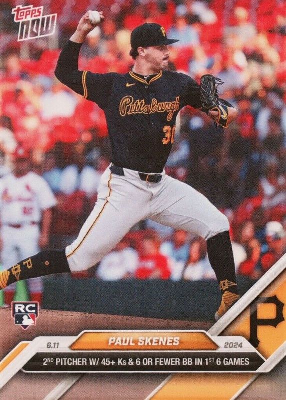 2024 TOPPS NOW #288 PAUL SKENES PITTSBURGH PIRATES ROOKIE 45 + Ks 1st 6 games