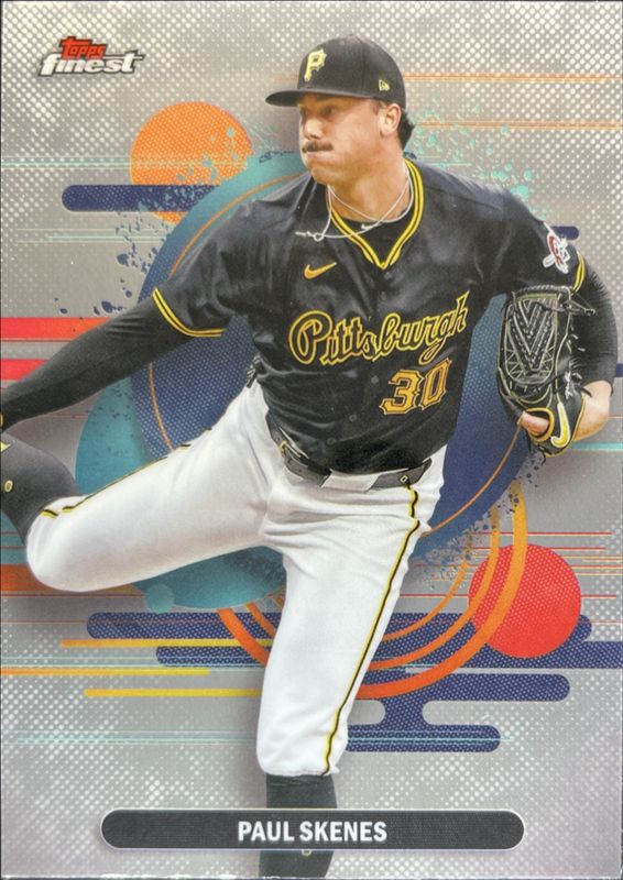 The Paul Skenes 2025 Topps Finest #103 Base Uncommon card is 1 of 86 Paul Skenes' card variations in the 2025 Topps Finest set being tracked by Sports Card Investor, including Base Common, Base Common - Oil Spill Refractor, Base Common - Refractor, Base Common - X-Fractor, and Base Rare.