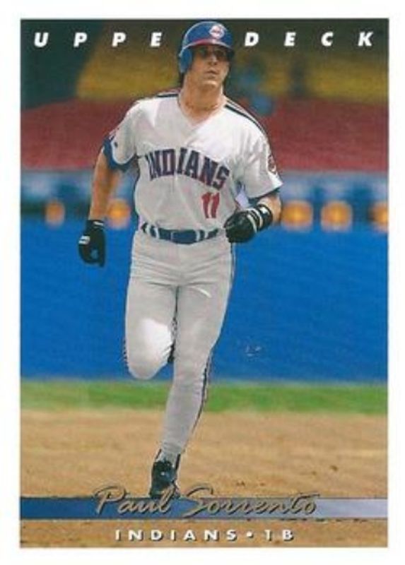 The Paul Sorrento 1993 Upper Deck #196 Base card is 1 of 2 Paul Sorrento's card variations in the 1993 Upper Deck set being tracked by Sports Card Investor, including Gold Hologram.