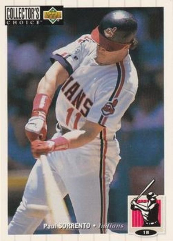 The Paul Sorrento 1994 Upper Deck Collector's Choice #262 Base card is 1 of 3 Paul Sorrento's card variations in the 1994 Upper Deck Collector's Choice set being tracked by Sports Card Investor, including Gold Signatures, and Silver Signatures.
