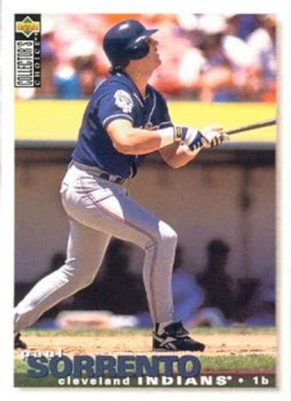 The Paul Sorrento 1995 Upper Deck Collector's Choice #267 Base card is 1 of 3 Paul Sorrento's card variations in the 1995 Upper Deck Collector's Choice set being tracked by Sports Card Investor, including Gold Signatures, and Silver Signatures.