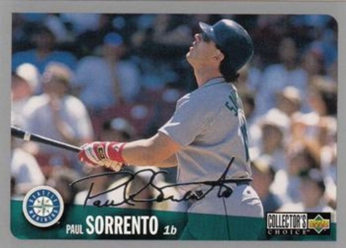 The Paul Sorrento 1996 Upper Deck Collector's Choice #727 Silver Signatures card is 1 of 6 Paul Sorrento's card variations in the 1996 Upper Deck Collector's Choice set being tracked by Sports Card Investor, including #126 Base, #727 Base, #126 Gold Signatures, #727 Gold Signatures, and #126 Silver Signatures.