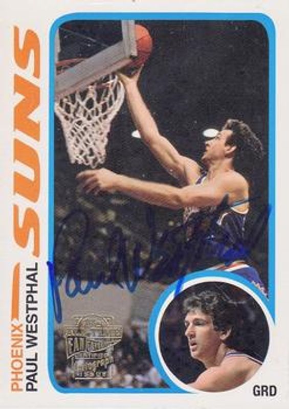 Paul Westphal's Basketball cards are available in at least 35 sets. Paul Westphal's biggest 7-day price movers are 2005 Topps 1952 Style #FFA-PWE All Time Fan Favorites Autographs, 2016 Absolute #4 Marks of - Fame /75, and 2016 National Treasures #LX-PWL 2015 Luxe Luxe Autographs - Printing Plates Black /1.