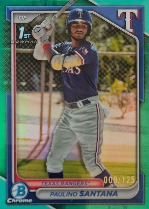 2024 Bowman Chrome Paulino Santana Aqua Refractor 1st Prospect #/125 Rangers