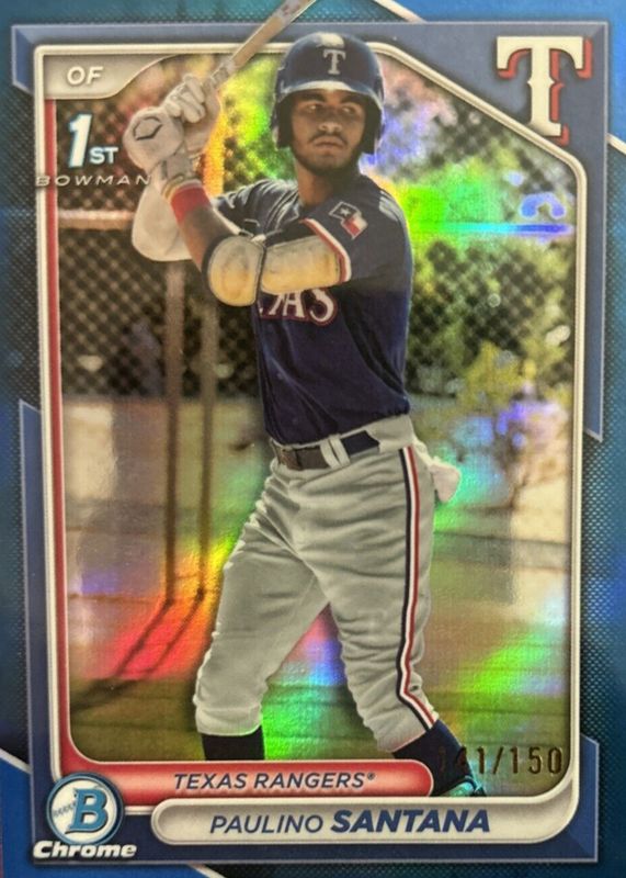 2024 Bowman Chrome Paulino Santana Blue Refractor 1st Prospect #40/150 Rangers