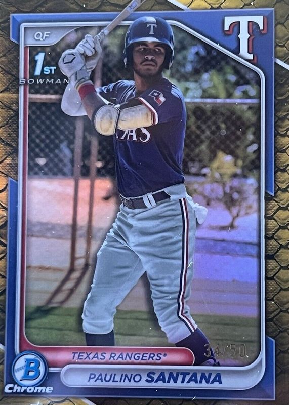 Paulino Santana 2024 Bowman Chrome - 1st Gold Reptilian /50 SP Texas Rangers