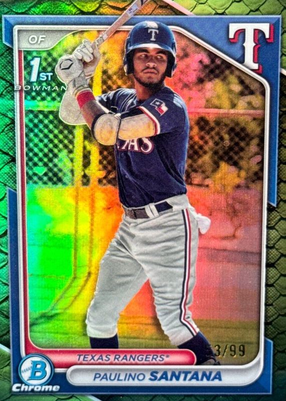2024 Bowman Chrome Paulino Santana RANGERS REPTILIAN GREEN REFRACTOR 1ST RC /99