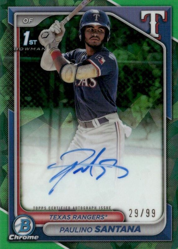 2024 Bowman Chrome Sapphire Paulino Santana Green Refractor Auto /99 CSPAPS 1st