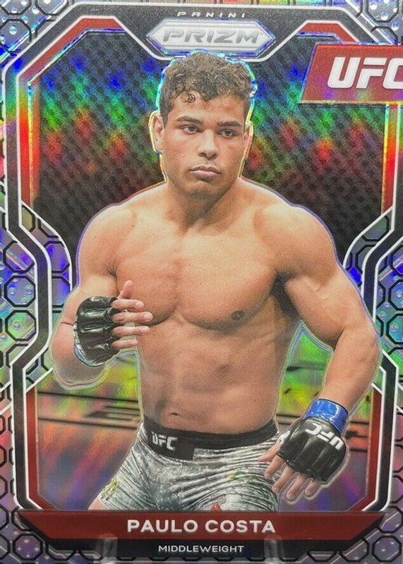 This card is 1 of 16 Paulo Costa's card variations in the 2021 Prizm UFC set being tracked by Sports Card Investor, including Silver, Red /275, Blue /199, Purple /149, and Orange /99.