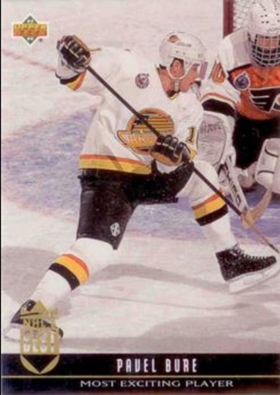 The Pavel Bure 1993 Upper Deck #HB5 NHL's Best card is 1 of 6 Pavel Bure's card variations in the 1993 Upper Deck set being tracked by Sports Card Investor, including #307 Base, #35 Base, #30 Future Heroes, #H2 Silver Skates Silver (Hobby), and #162 SP.