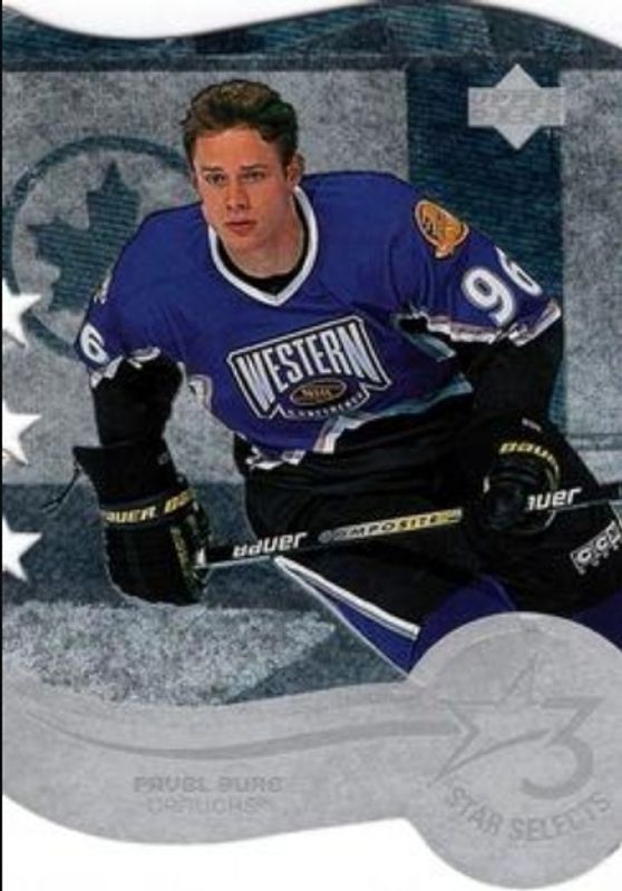 The Pavel Bure 1997 Upper Deck #T5C Three Star Selects card is 1 of 10 Pavel Bure's card variations in the 1997 Upper Deck set being tracked by Sports Card Investor, including Base, Game Dated, Box Toppers, Series One Jumbo, and Smooth Grooves.