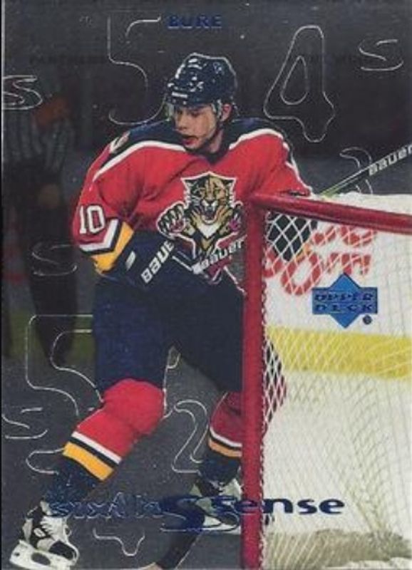 The Pavel Bure 1999 Upper Deck #SS13 Sixth Sense card is 1 of 33 Pavel Bure's card variations in the 1999 Upper Deck set being tracked by Sports Card Investor, including #149 Base, #59 Base, #149 UD Exclusives /100, #59 UD Exclusives /100, and #149 UD Exclusives 1/1 /1.