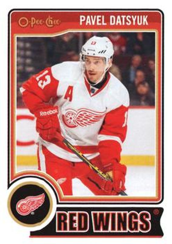 The Pavel Datsyuk 2014 O-Pee-Chee #38 Base card is 1 of 10 Pavel Datsyuk's card variations in the 2014 O-Pee-Chee set being tracked by Sports Card Investor, including Rainbow, Red, Retro, Retro Blank Backs, and Black Rainbow /100.