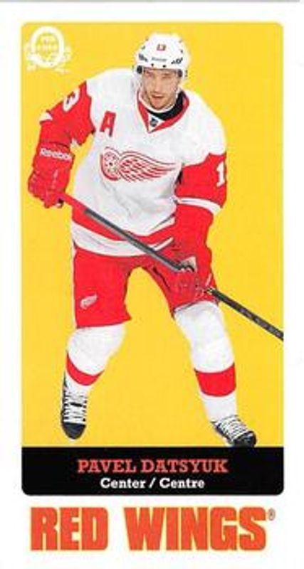 The Pavel Datsyuk 2014 O-Pee-Chee #13 Mini Tall Boys card is 1 of 10 Pavel Datsyuk's card variations in the 2014 O-Pee-Chee set being tracked by Sports Card Investor, including Base, Rainbow, Red, Retro, and Retro Blank Backs.