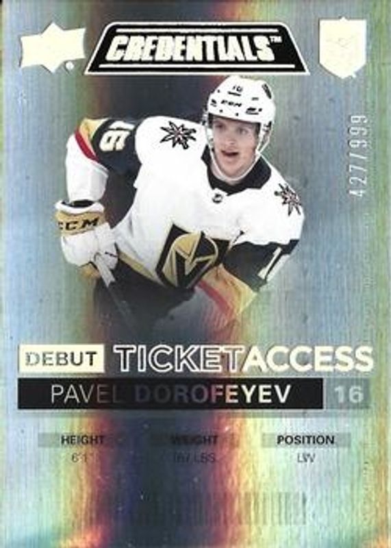 Pavel Dorofeyev 2021 Upper Deck Credentials #91 Base /999 Rookie RAW Price Guide