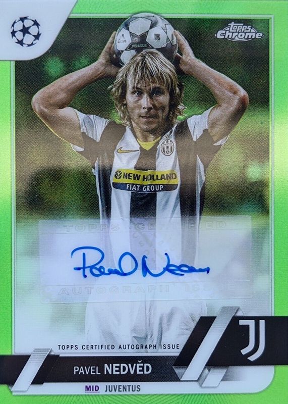 2022-23 Topps Chrome UEFA Pavel Nedved Neon Green Refractor Auto /99