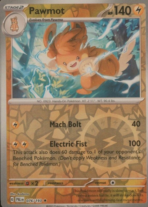 Pawmot 2023 Scarlet & Violet: Paldea Evolved #076/193 Reverse Holo PSA 9 Price Guide
