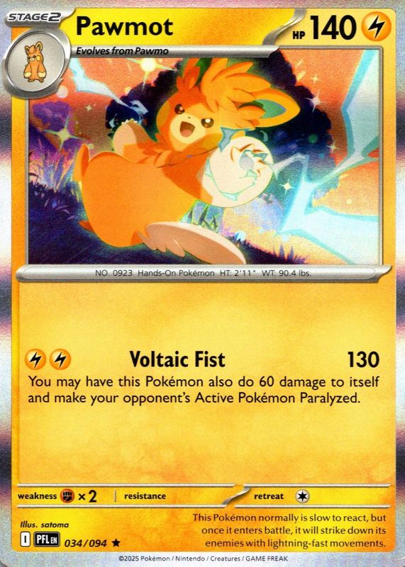 The Pawmot 2025 Mega Evolution: Phantasmal Flames #34/94 Holo card in Raw TCG (Near Mint) condition has moved down -$0.51 (-33.8%) in the last 30 days and was last sold for $0.99 .